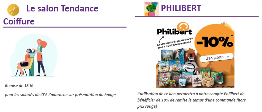 Des partenariats offrant des réductions : https://oaasis.cea.fr/com/page/6320